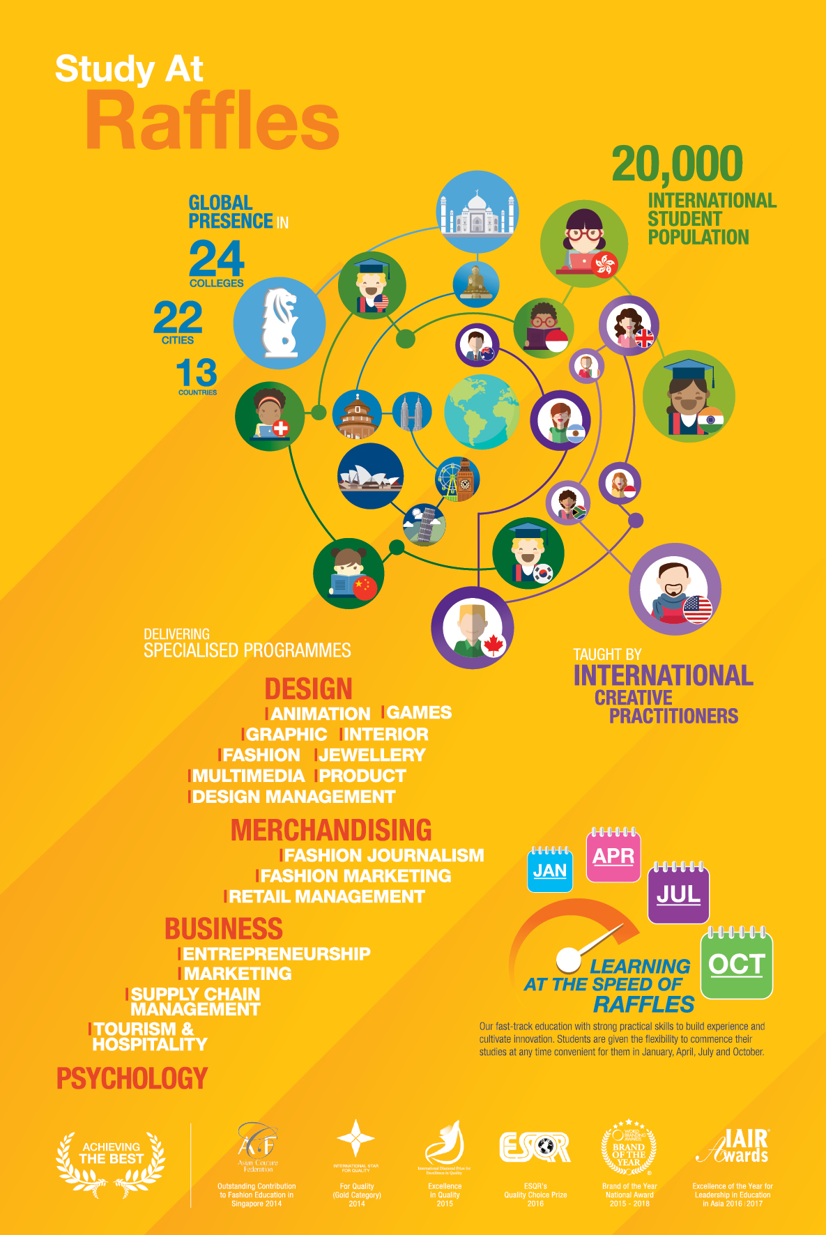 The Brand brochure highlights Raffles Advantages, which is usually distributed to prospective students at events or Education Booth.