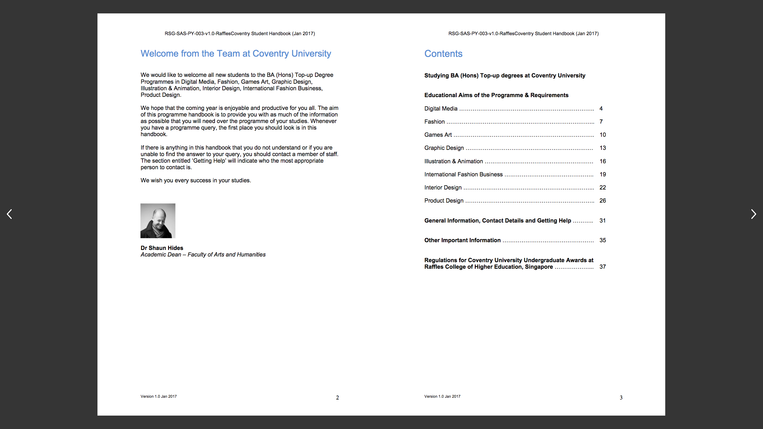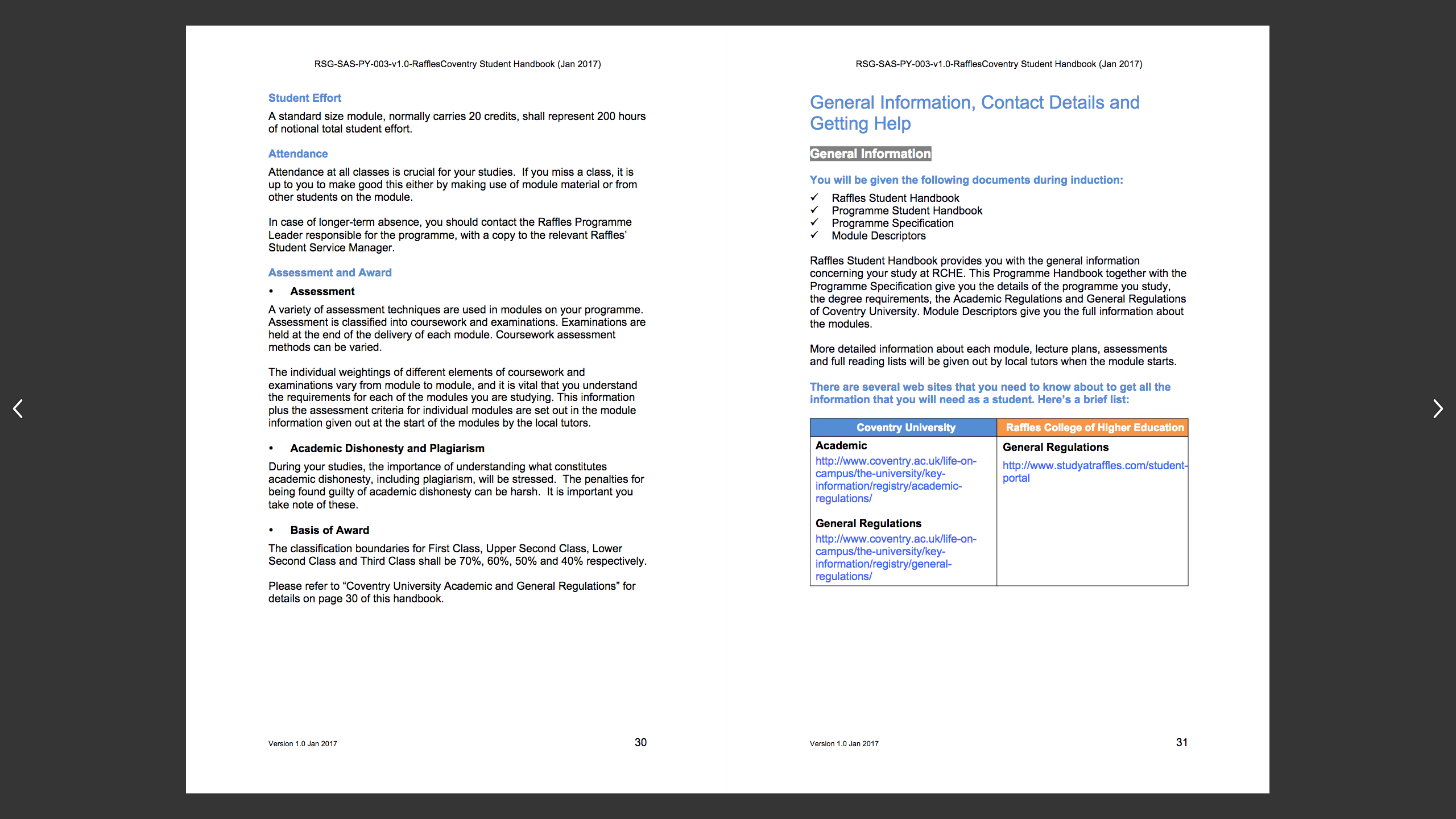 To login to Coventry University’s Handbook, please visit https://issuu.com/RafflesSG/Docs/RafflesCoventry_Student_Handbook.